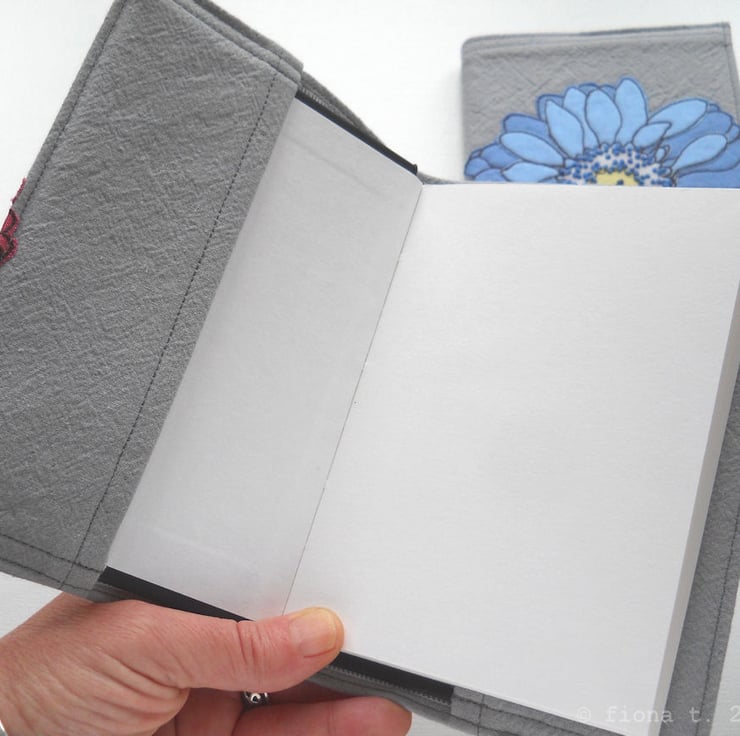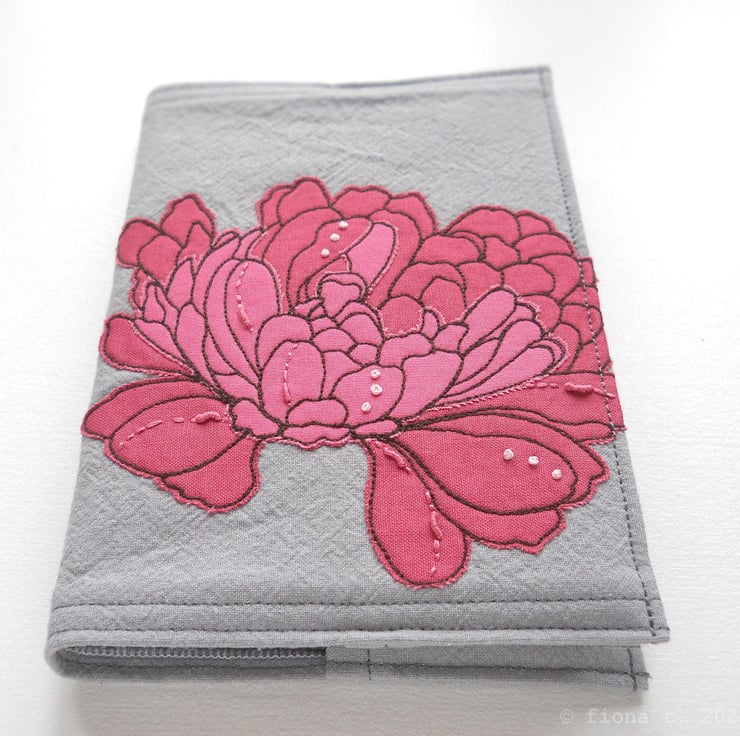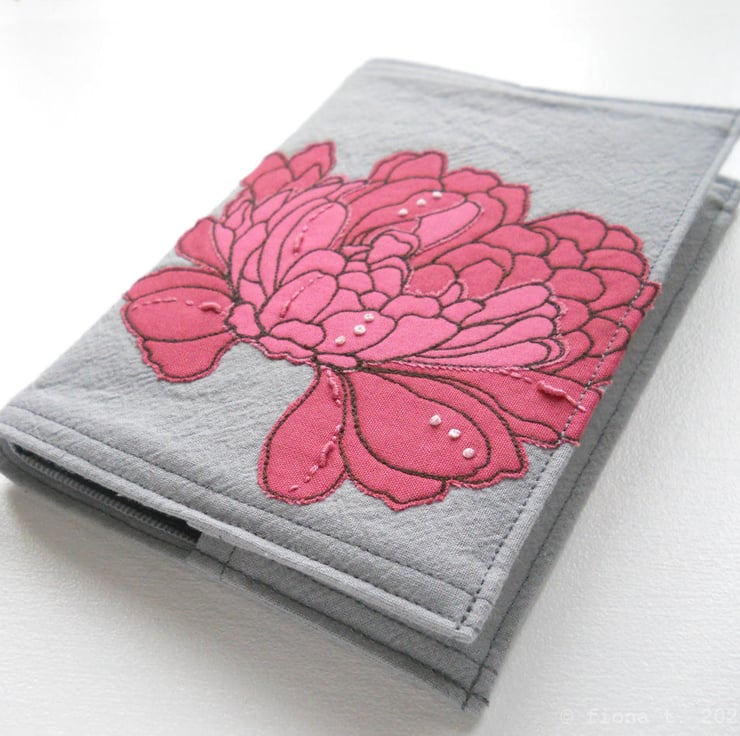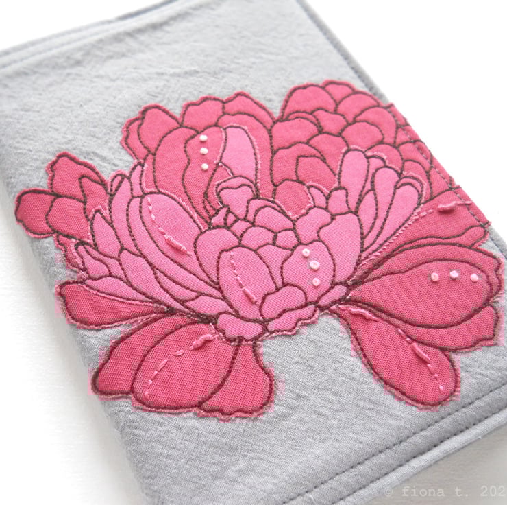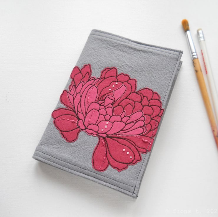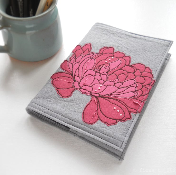 free motion and hand embroidered A6 notebook cover with sketchbook inside – rose pink