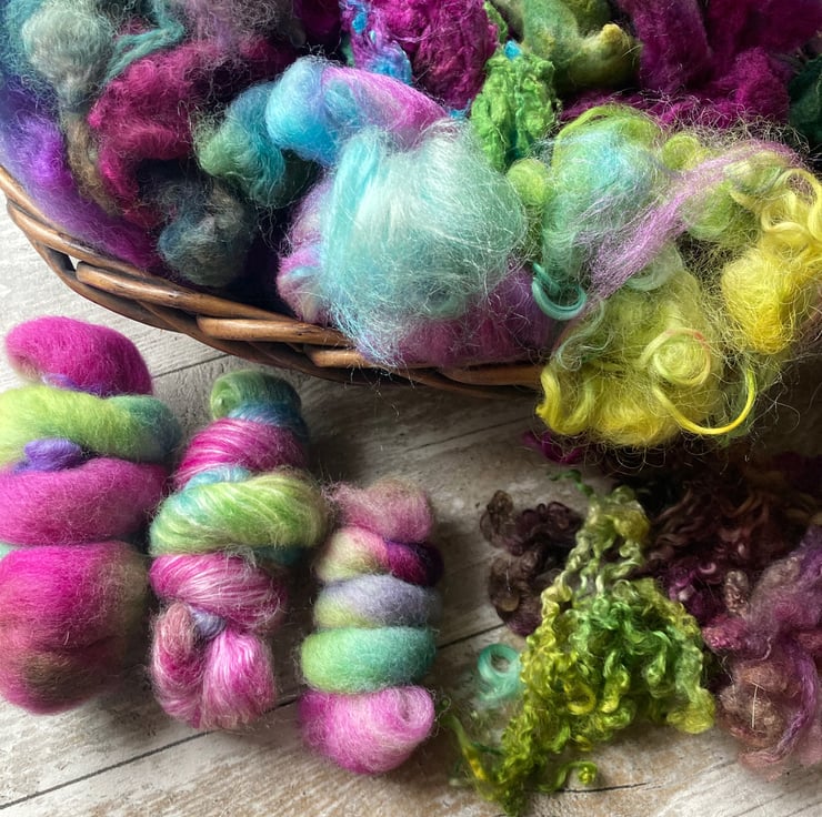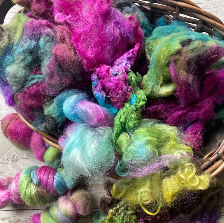 A gorgeous fluffy as a cloud selection of Kent Romney, Llama blend, Lonk, local alpaca, locks, silk noil and tussah silk,