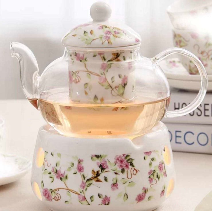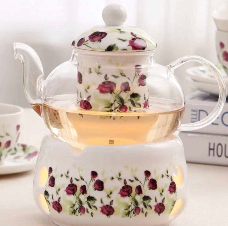 Glass Teapot :20x11.5CM , Ceramic Warmer:10x11.5x7.5CM