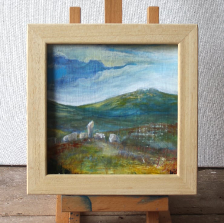 Small format landscape of King Arthurs Hall, ancient stone enclosure on Bodmin Moor Cornwall.