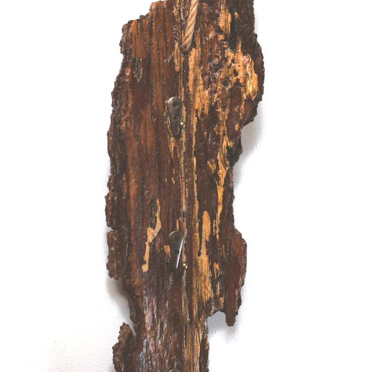 Large vertical driftwood keyrack made using driftwood bark gathered from Cardigan bay with antique style hooks and 6cm twine
