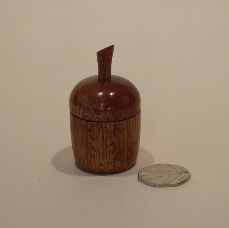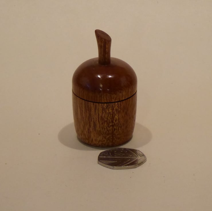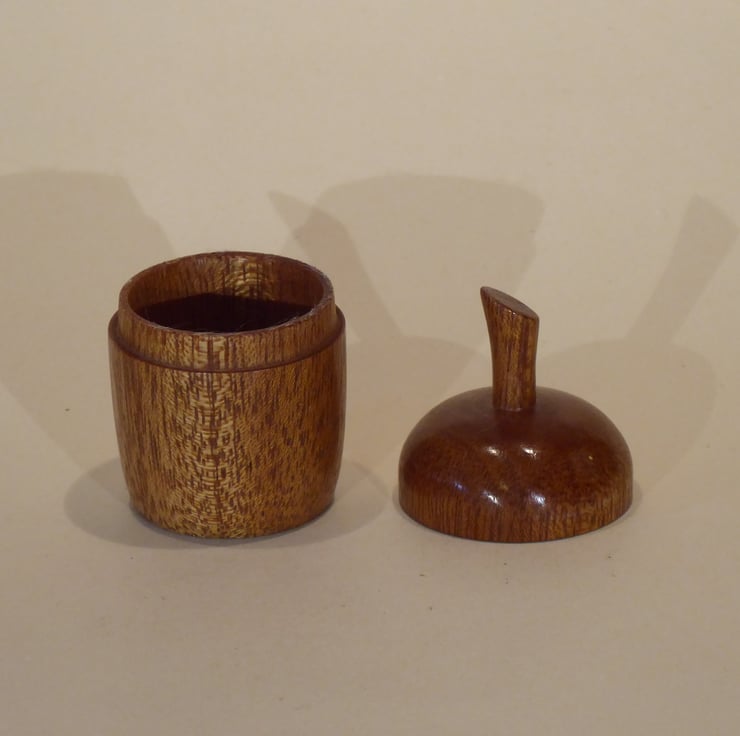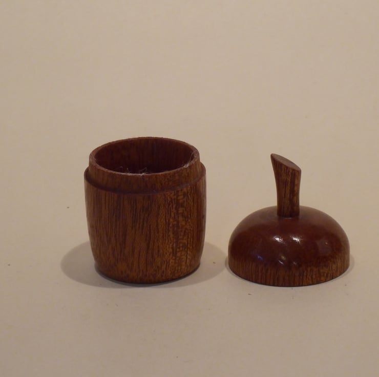 Small Lidded box made from Mahogany and finished in carnauba wax. The lid is a light friction fit