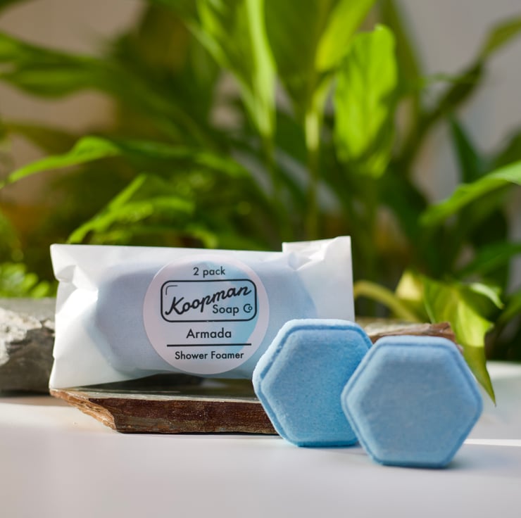 Shower foamers provide all the luxury of a bath bomb for the shower. When the shower foamer comes into contact with water, it bubbles up creating a thick luxurious foam that can be used to wash your body. The shower foamers provide gentle exfoliation and rinse away leaving your skin feeling soft.