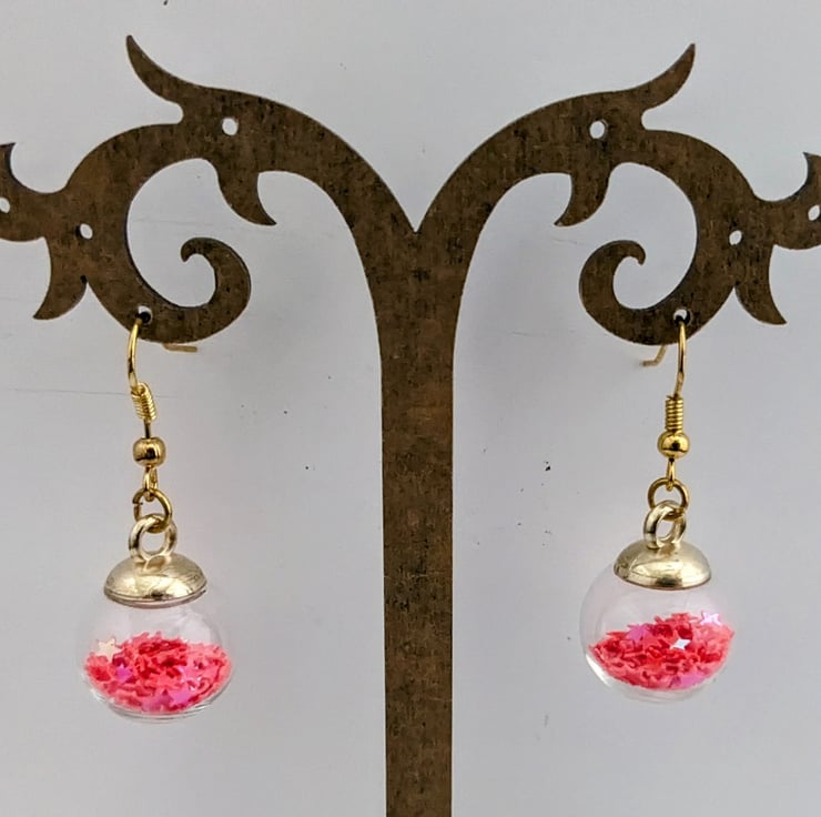 15mm glass Christmas baubles on hypo allergenic gold plated hooks. In an organza gift bag.