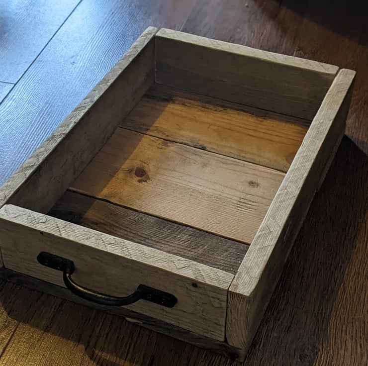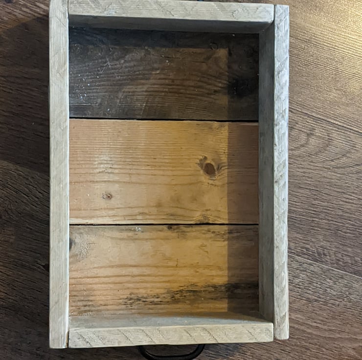 As each tray is made from reclaimed wood, whilst sizing is consistent, variations in grain, wood condition and colour will occur.