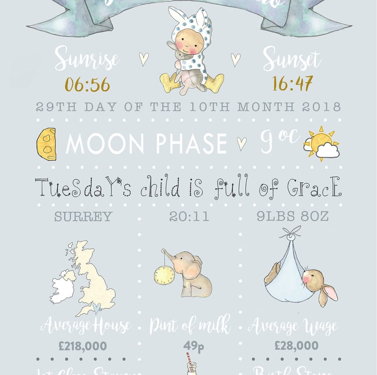 There is nothing quite as special and we celebrate that day for the rest of their lives. Our birth announcement personalised nursery art print will let you treasure the moment forever, beautiful keepsake to capture the exact moment in time and history baby was born. reproduced from original watercolour and ink artwork by Sarah. Create your look with Corkymandle nursery art. Every framed print is gift wrapped for FREE in white tissue paper and beautifully presented. To read more about Corkymandle and Sarah please view the bio section.