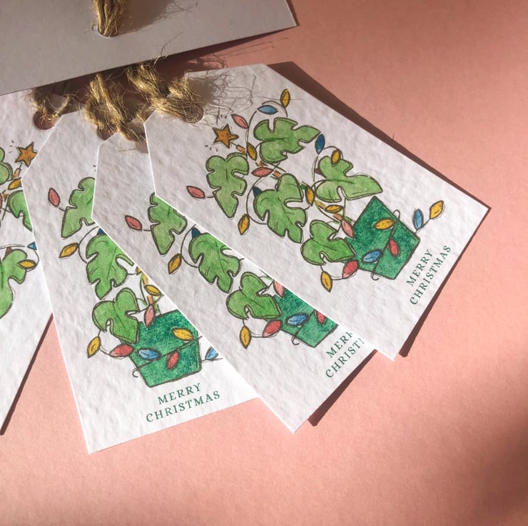Add a touch of holiday cheer to your presents with these whimsical winter-themed gift tags! Printed on recycled card for extra eco-friendliness, each pack comes with 4 tags and twine, making it the perfect finishing touch for your festive gifts. Spread the love and the cheer this holiday season!