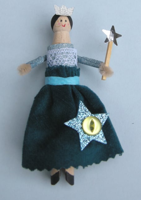 The kit contains all you need to create a christmas fairy with her own wand and crown. No glue is needed and all the fairies clothes have been pre cut. Included in the kit are easy to follow illustrated instructions. All you need is felt pens to draw on the face, hair and shoes.