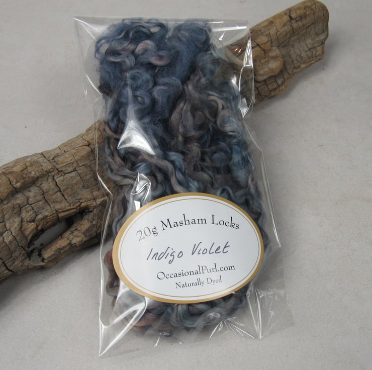 20g of beautifully curly Masham locks naturally dyed and ready for felting, spinning or weaving.