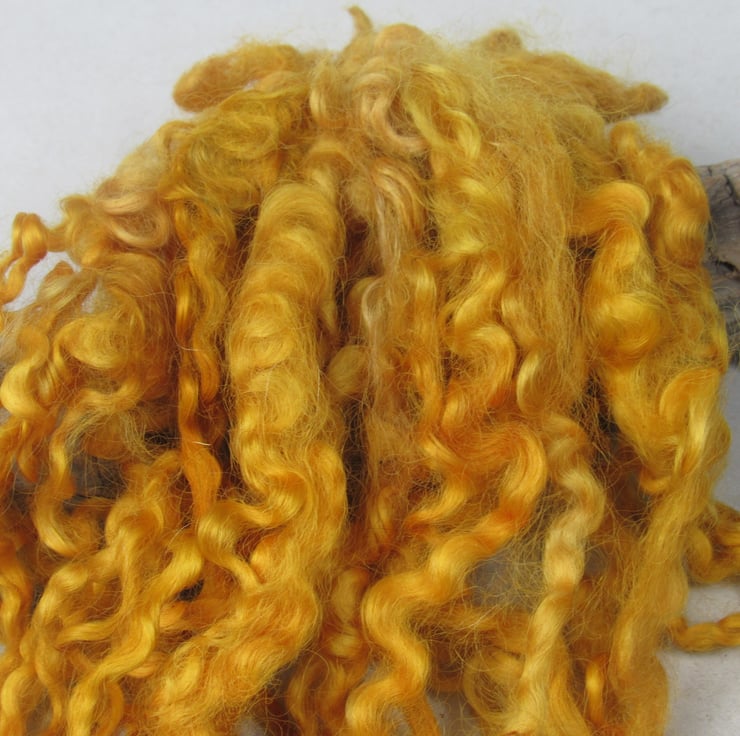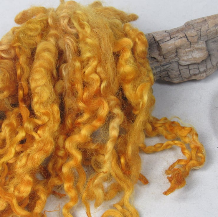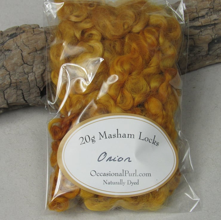 20g of beautifully curly Masham locks naturally dyed and ready for felting, spinning or weaving.