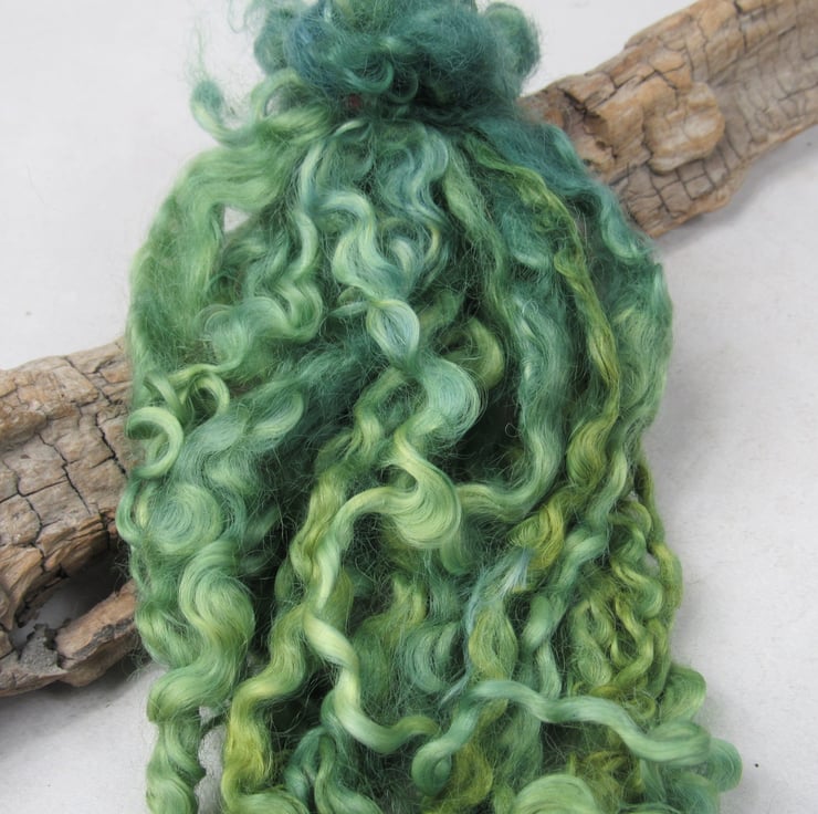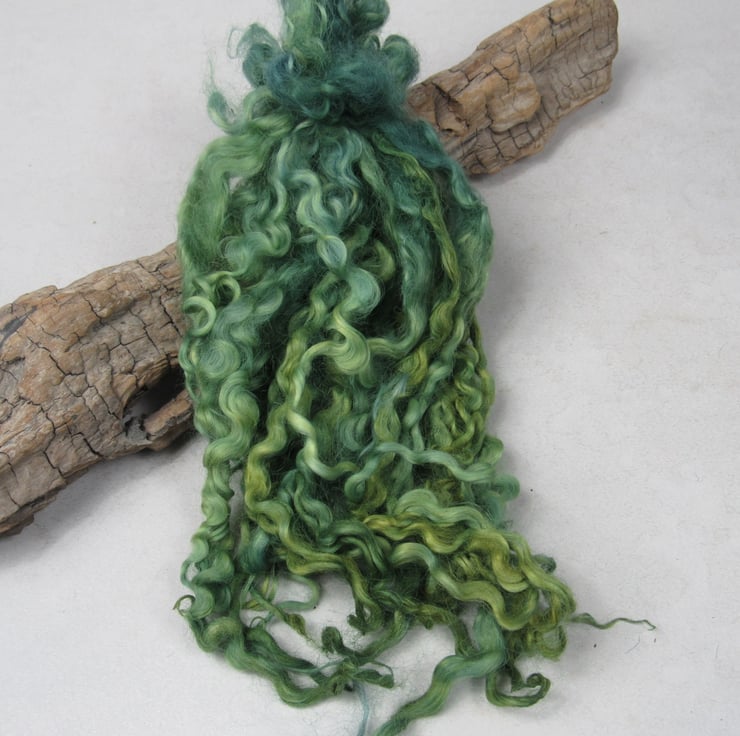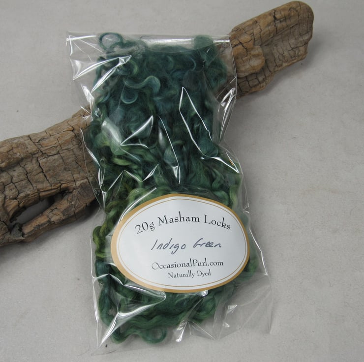 20g of beautifully curly Masham locks naturally dyed and ready for felting, spinning or weaving.