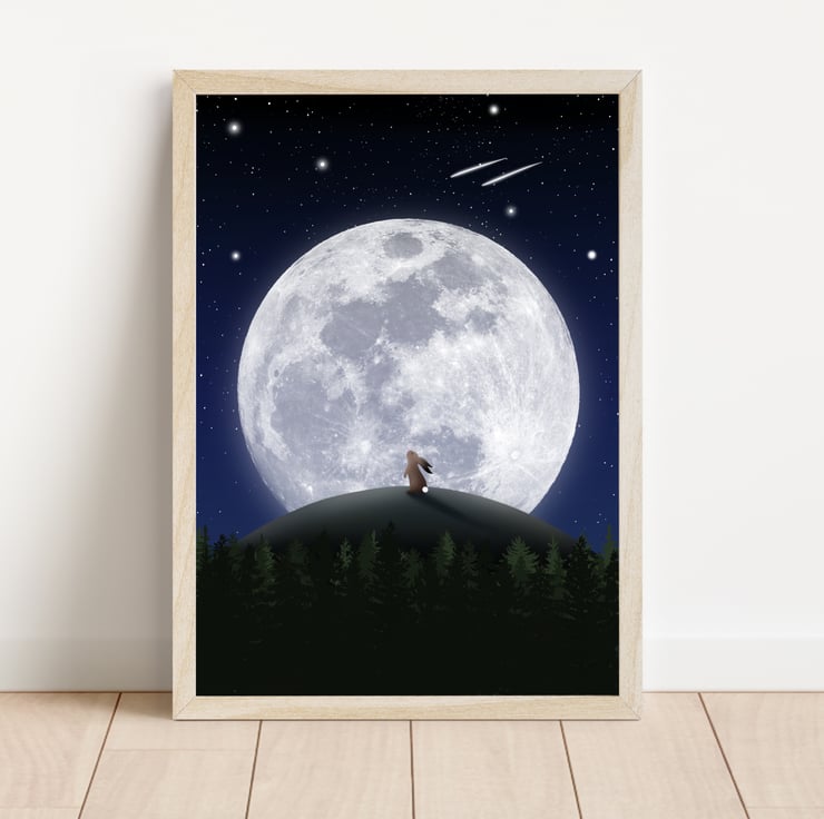 This magical print was inspired by my love of wildlife and the night sky. I grew up in the countryside and wanted to capture the beauty of its magic and calmness in to my artwork and bring it in to your home for you to enjoy too.