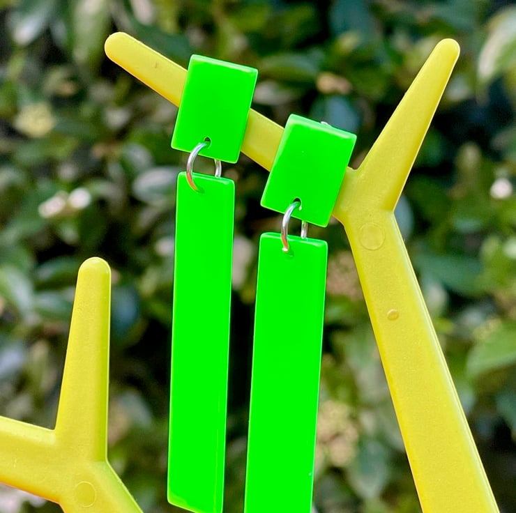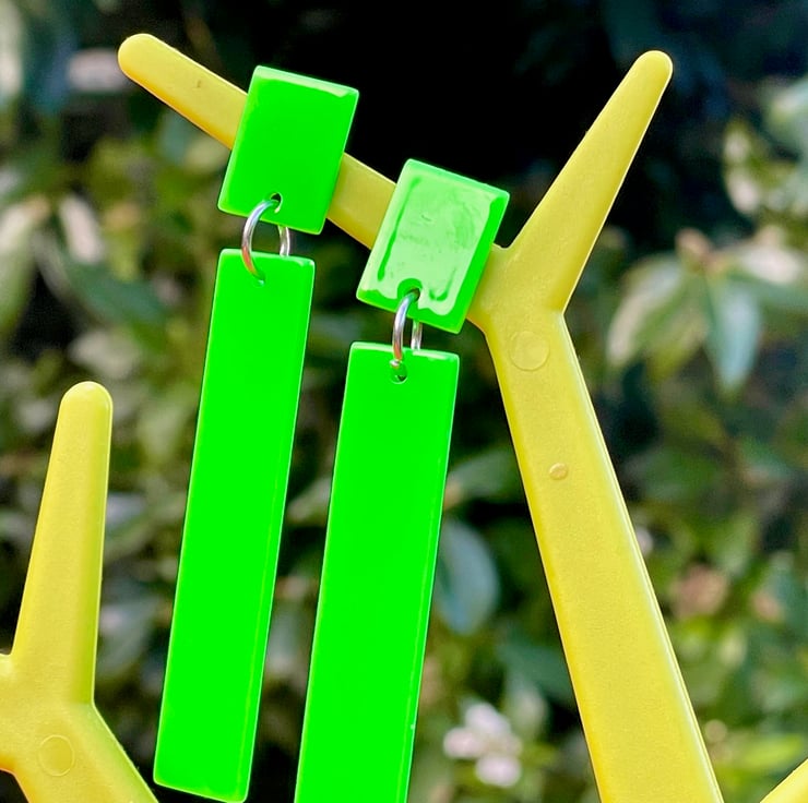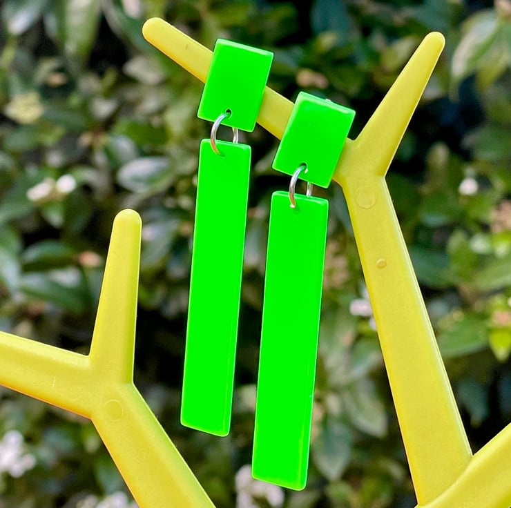 Proper neon perspex drop earrings laser cut and in gorgeous cyber green. So on trend.