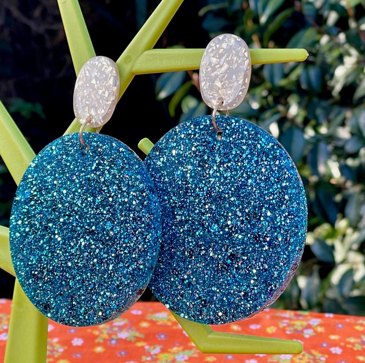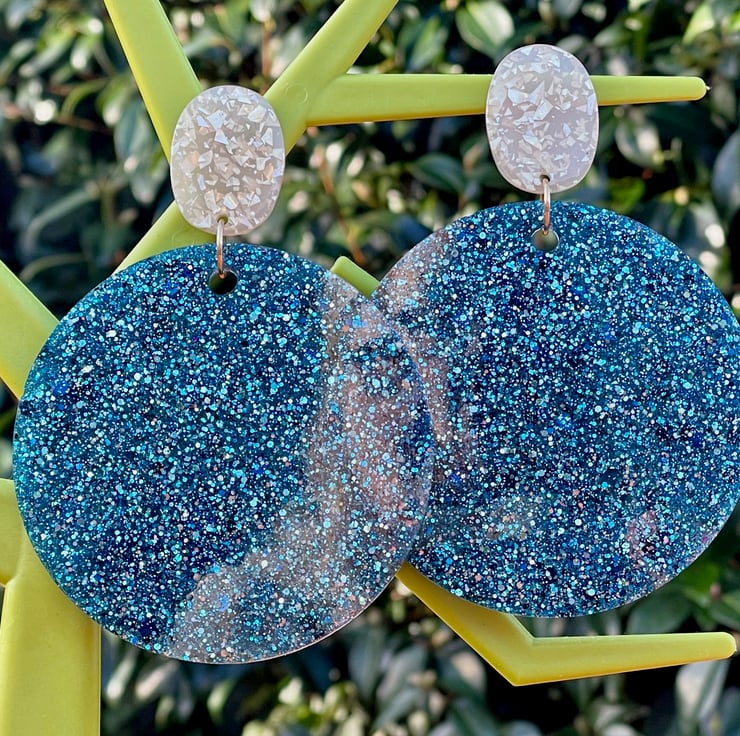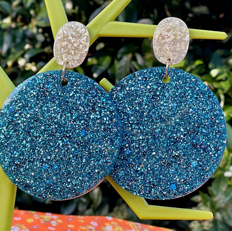 Well these are stunning. We've been at the resin again. French navy blue circle art deco earrings. Super sized.