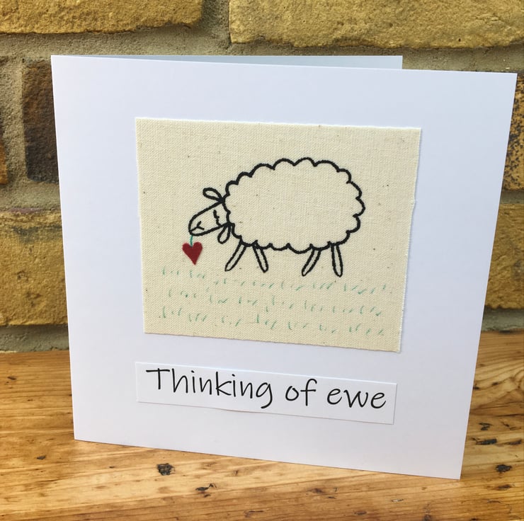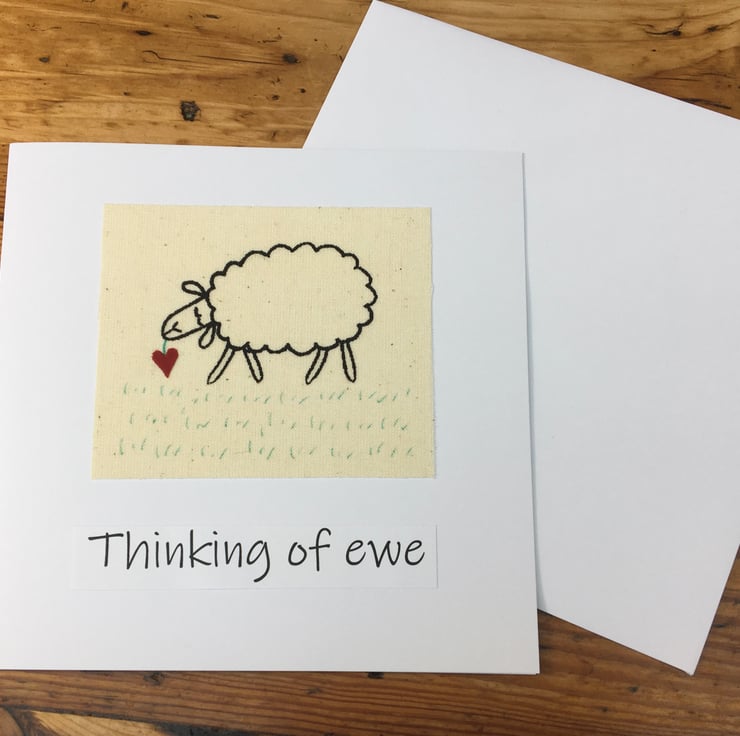 Thinking of you card, Friendship card, Handmade card with sheep & stitched heart