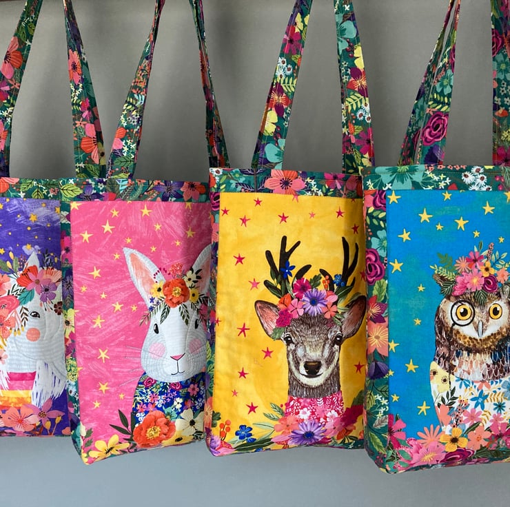 Magic Friends by Mia Charro for Free Spirit is the inspiration for these tote bags.