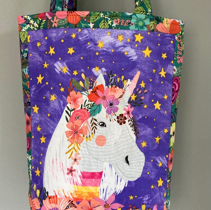 The bag is machine quilted to make your beautiful unicorn stand out against the starry background.