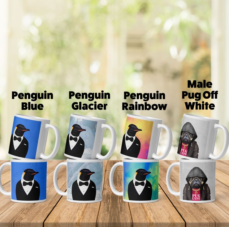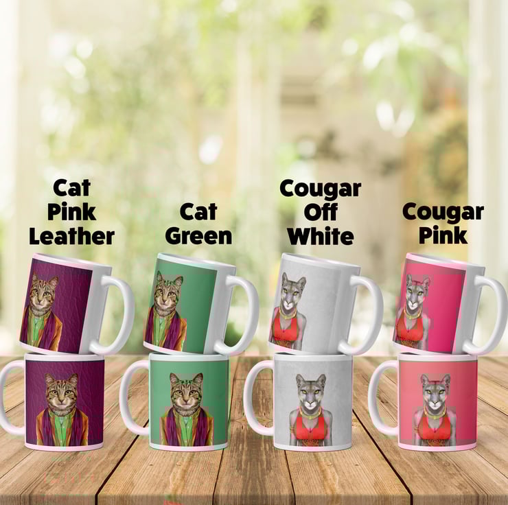 Animal wearing clothes mug, bear, cat, cougar, dog, dachshund, pug, penguin, llama, beaver, monkey, owl, fox, duck, 11oz, 20z gift, present
