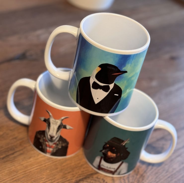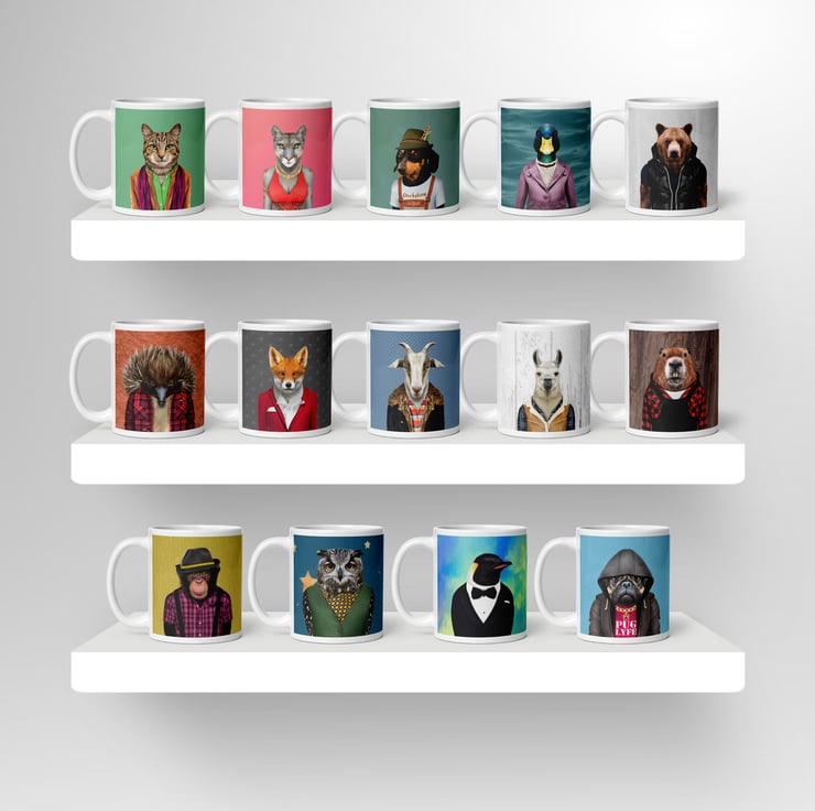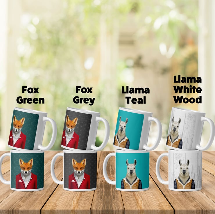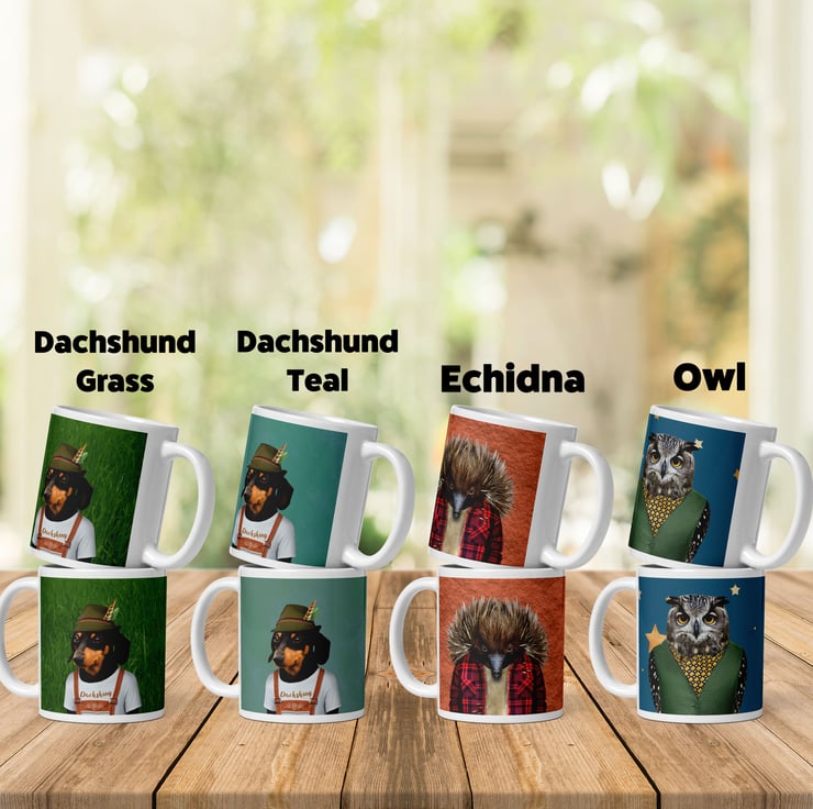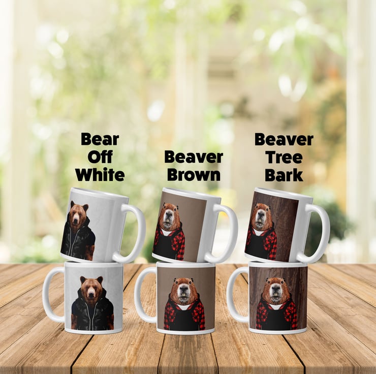 Animal wearing clothes 11oz, 20z mug, bear, dog, beaver, cat, llama, dachshund