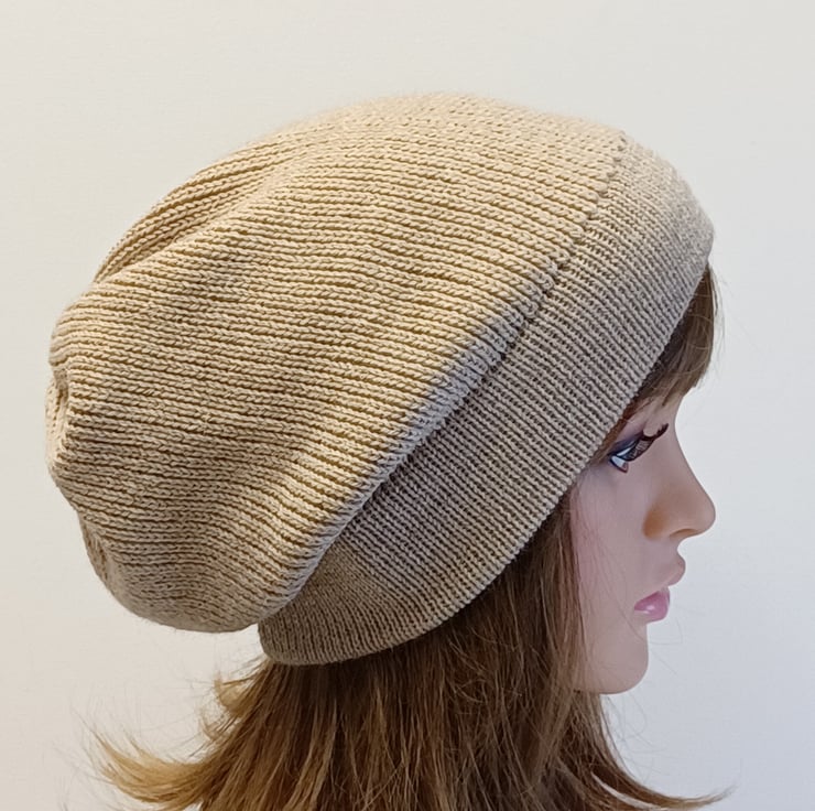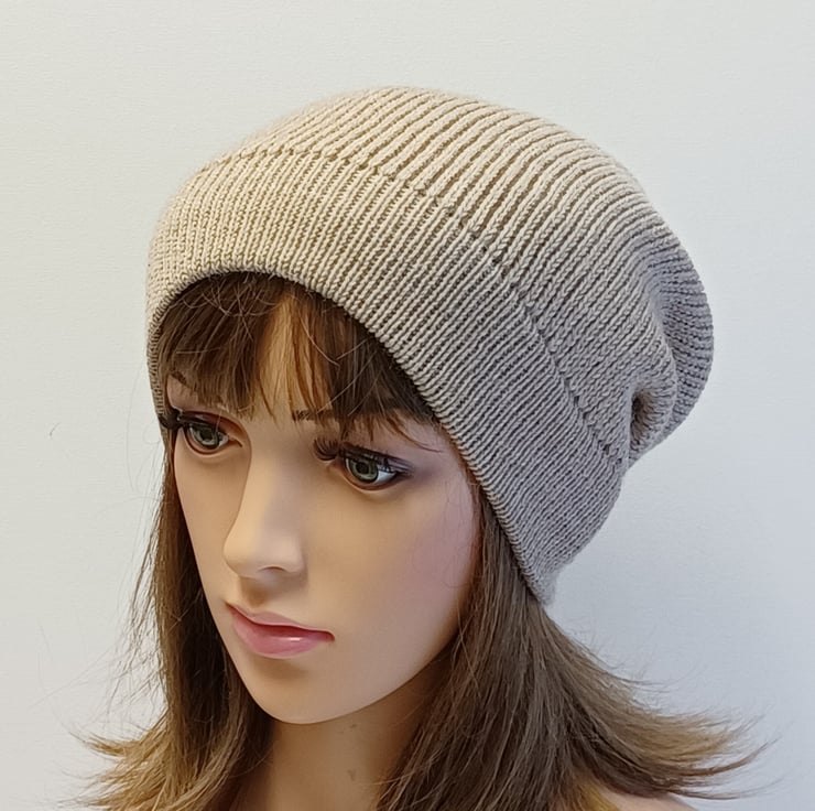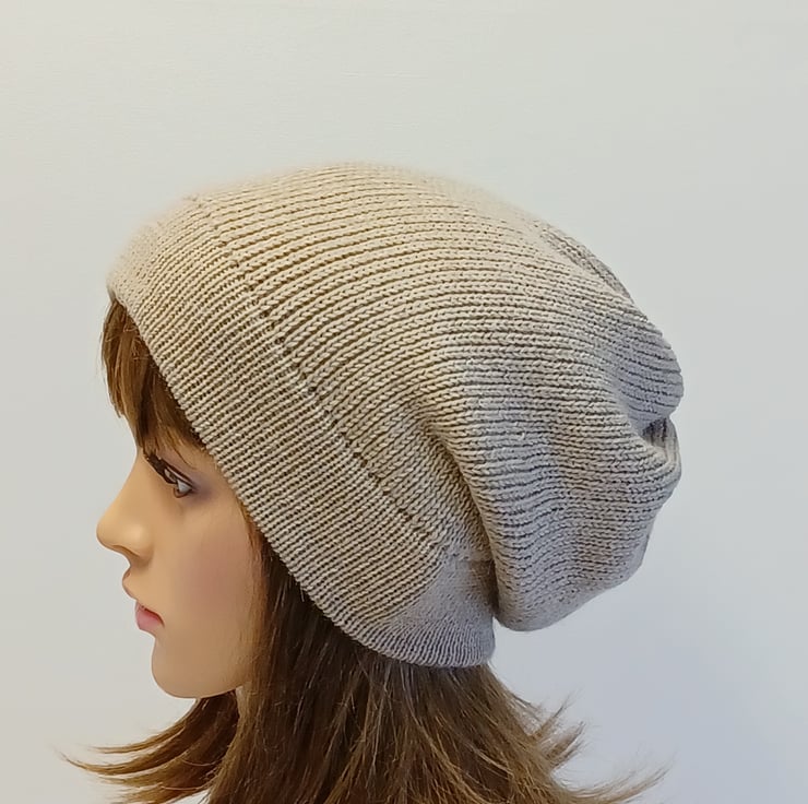 Alpaca blend slouchy beanie hat, beige handmade baggy beanie, slouch hat.
