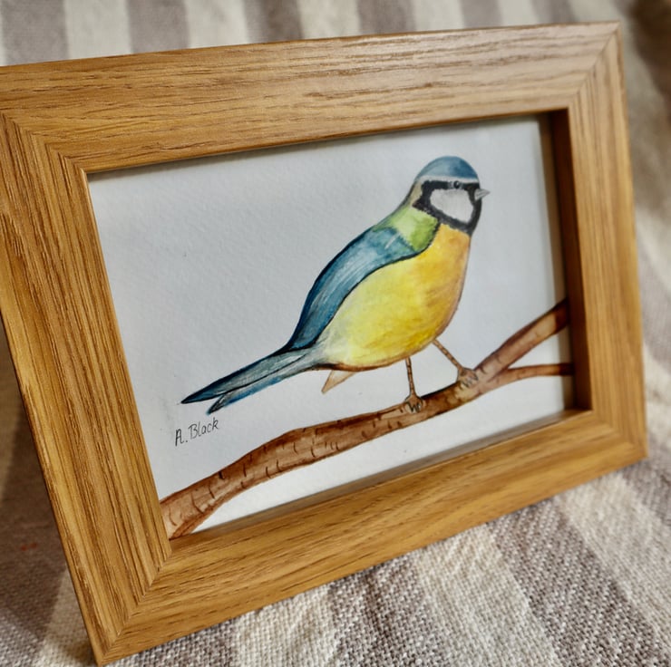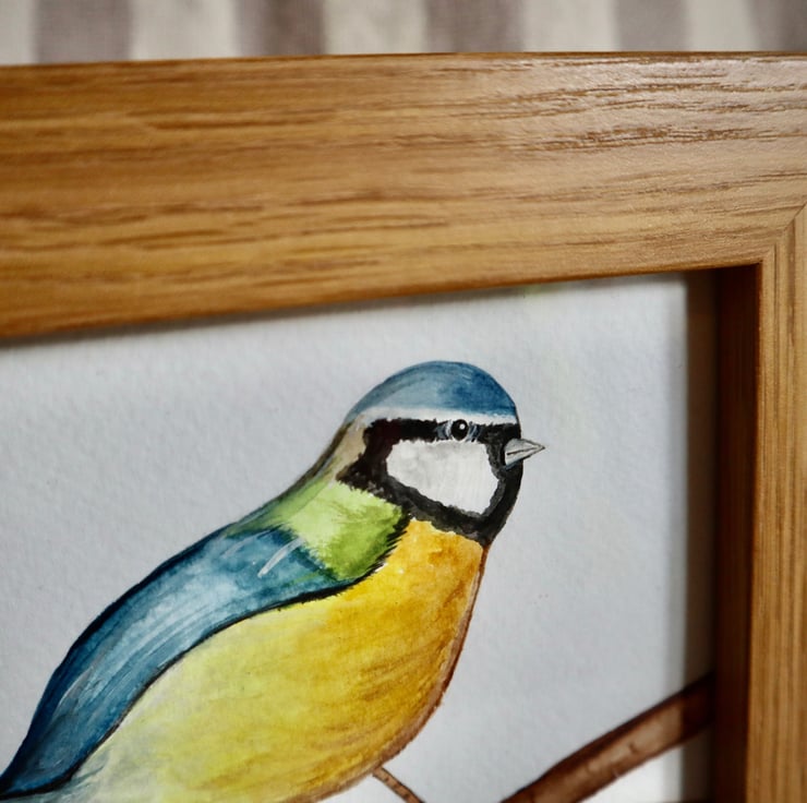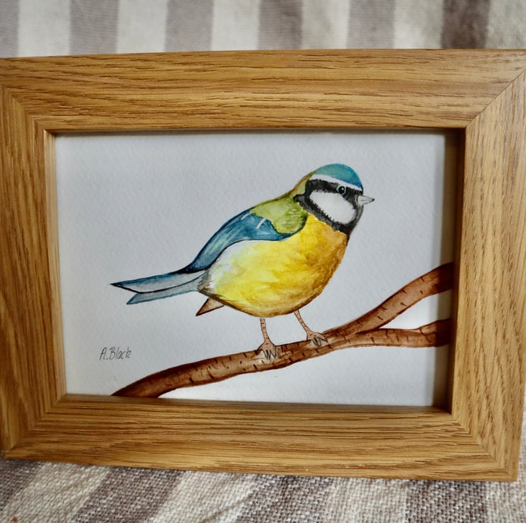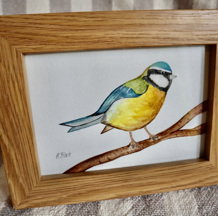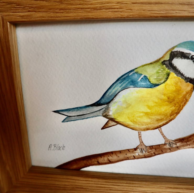 Bluetit painted using various watercolour on specific paper.
