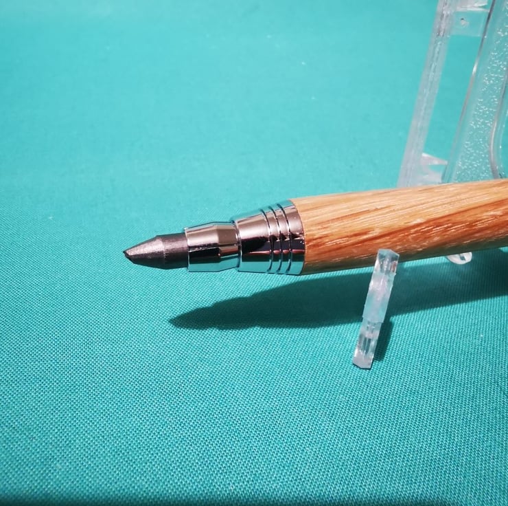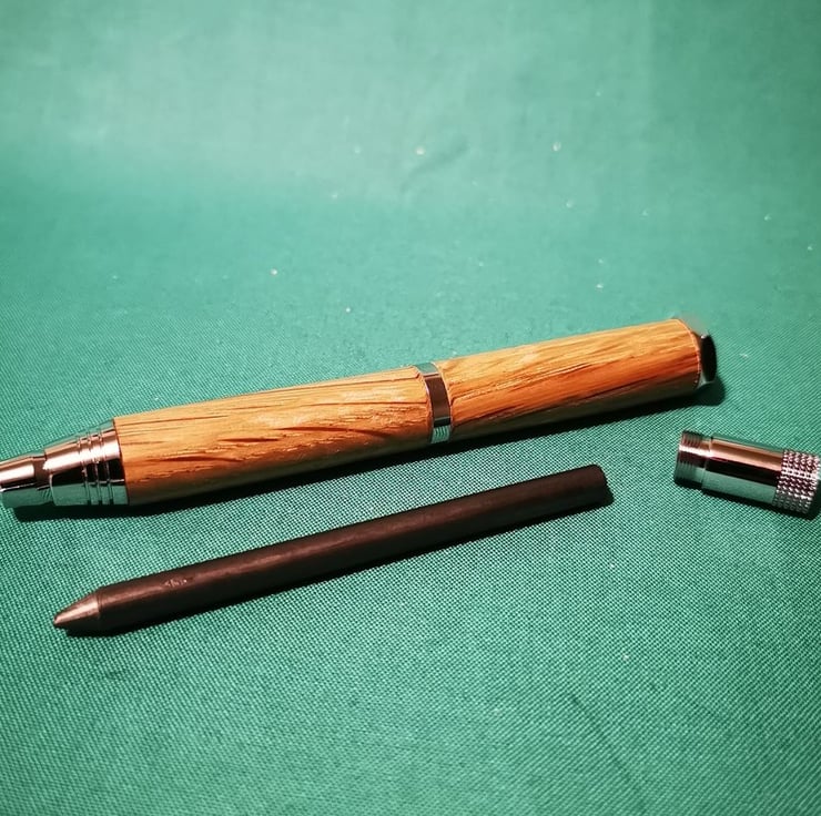 A chunky, quite weighty amercian white oak pencil. This pencil holds a 5.6mm lead and is operated by pressing the top to release and reinsert the lead as required.