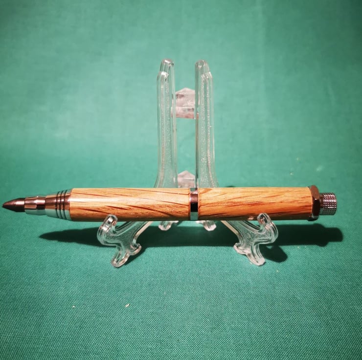 Wood finished with a diamond coat pen polish - a liquid, friction polish that produces a water & wear resistant finish.