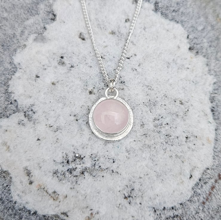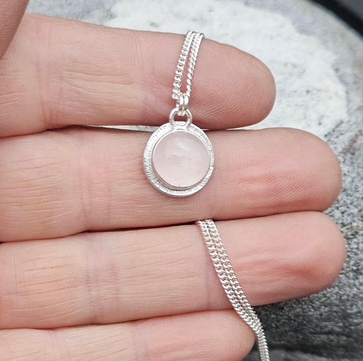 This necklace is made from fine and sterling silver with a beautiful 10mm Rose Quartz