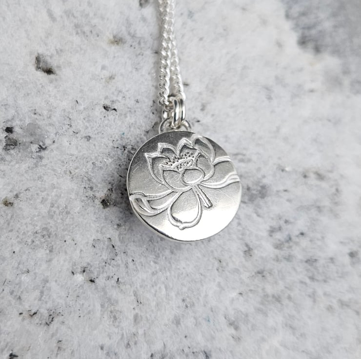 The pendant measures 12mm across and has a pretty Lotus flower on the back.