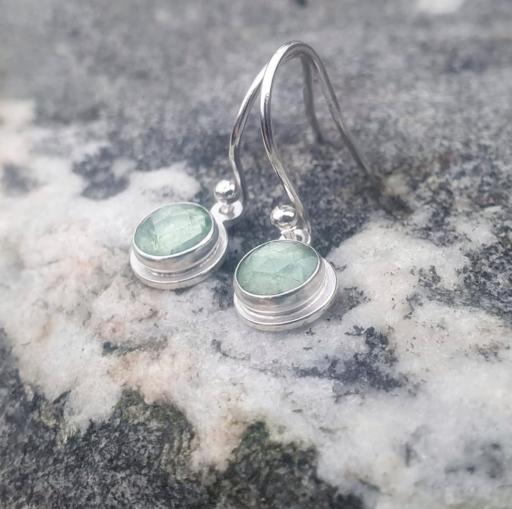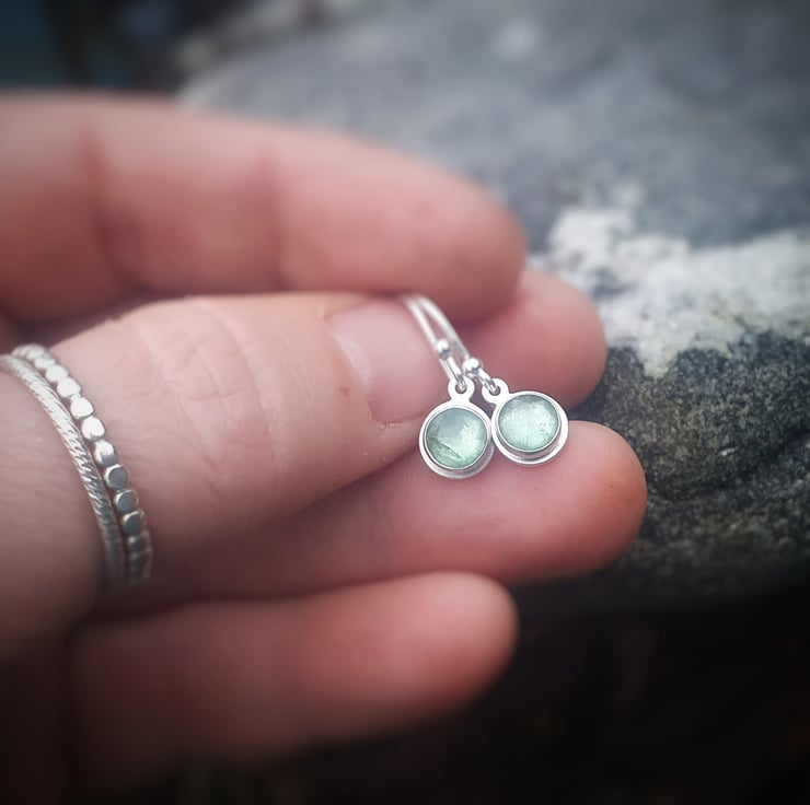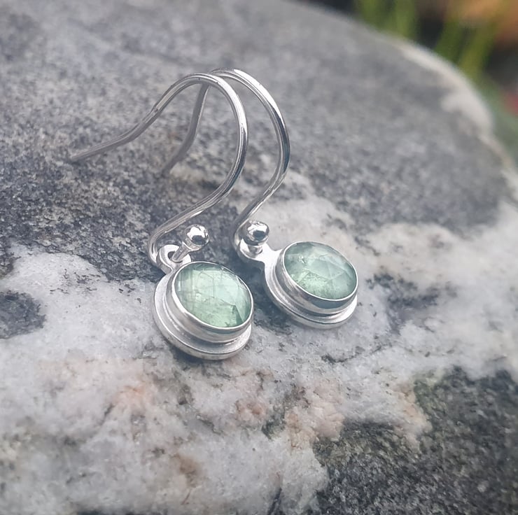 They have stunning 6mm sparkling rose cut Kyanite gemstones in a beautiful soft tropical sea green,