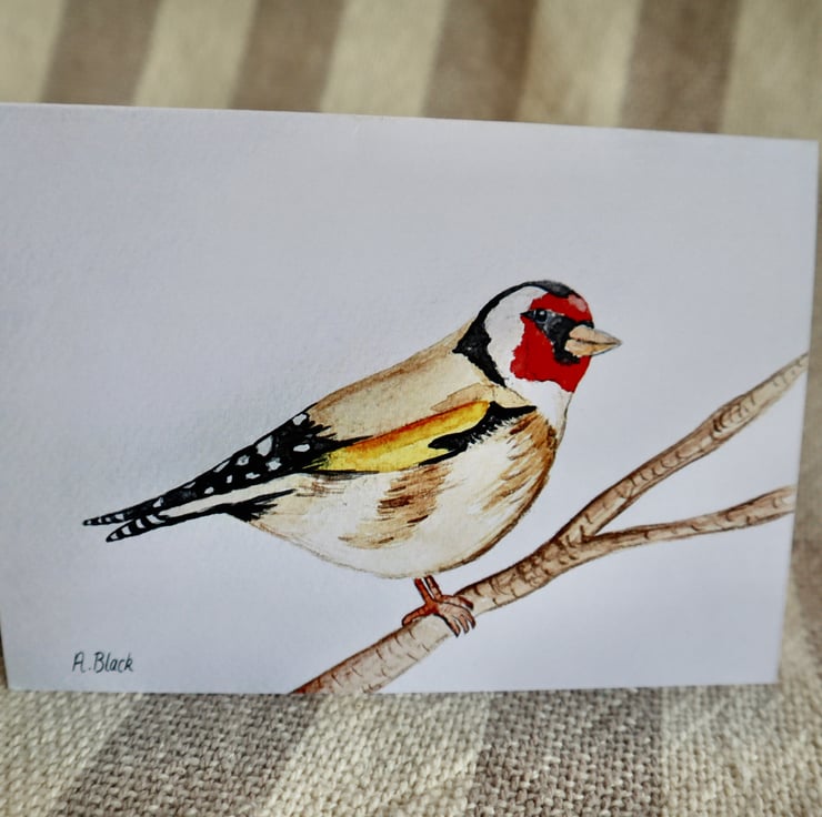 Goldfinch prints on a 6x4 (approx) card.