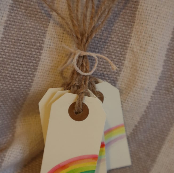 Small sized tags with jute string attached so that you may tie or stick as you wish. Come in hard envelope and plastic protector, pack of 5.