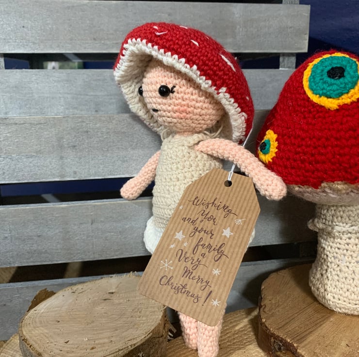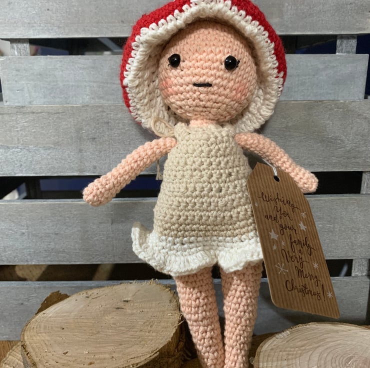 Crocheted fairy with a removable toadstool hat