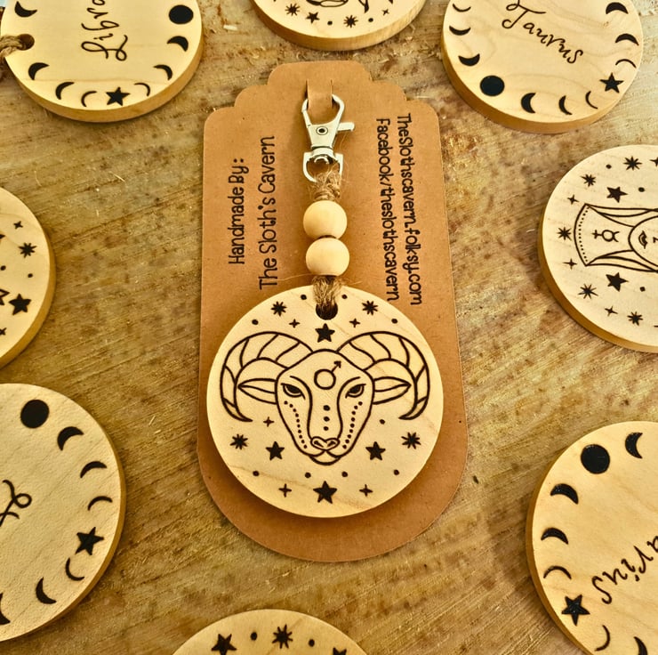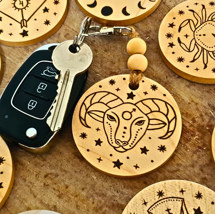 A unique present for the astrology lovers, this Aries wooden keyring can be gifted all year round, or as a birthday present to someone born between March 21st - April 19th!