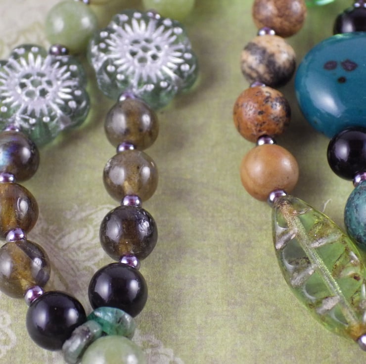 High quality gemstones include: peridot, emerald, obsidian, labradorite, picture jasper, turquoise, dragons vein agate and India agate.