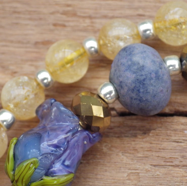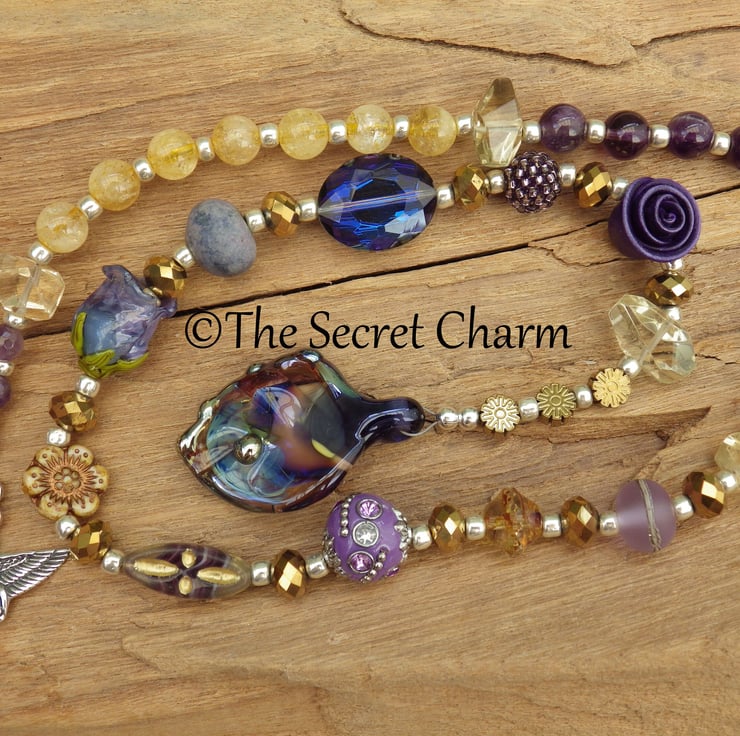 The strong feminine energies of this piece are amplified by the inclusion of handmade lampwork glass and ceramic beads by female artisans from the UK . There are some truly beautiful pieces of work included in this strand.