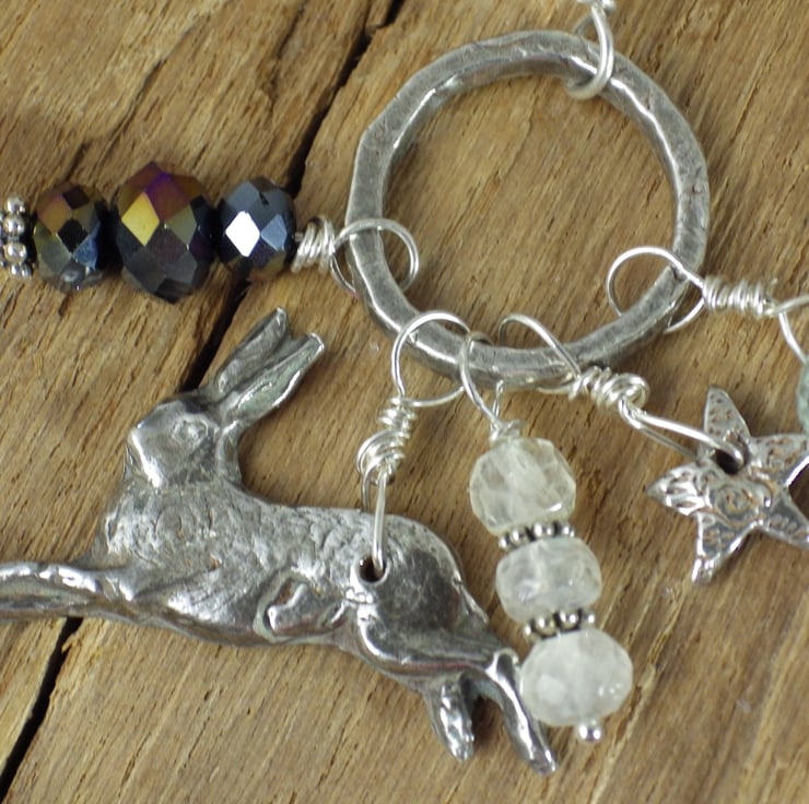 These special one of a kind prayer beads are 12" (30cm) long and have been handmade using a variety of semi precious gemstones, artisan lampwork glass, sterling silver, artisan ceramics, fine silver and crystal.