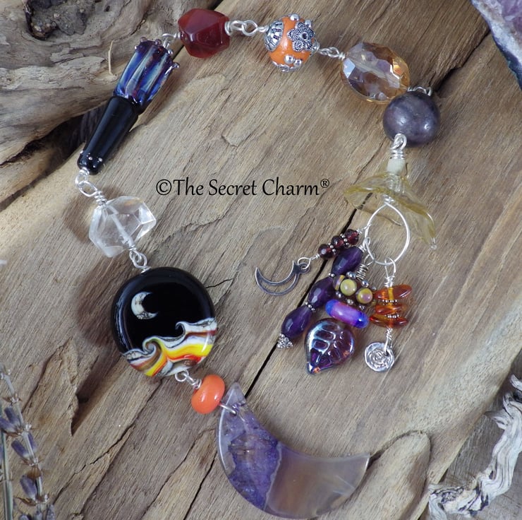 The strong feminine energies of this piece are amplified by the inclusion of handmade lampwork glass by female artisans from the UK and US. There are some truly beautiful pieces of work included in this strand.