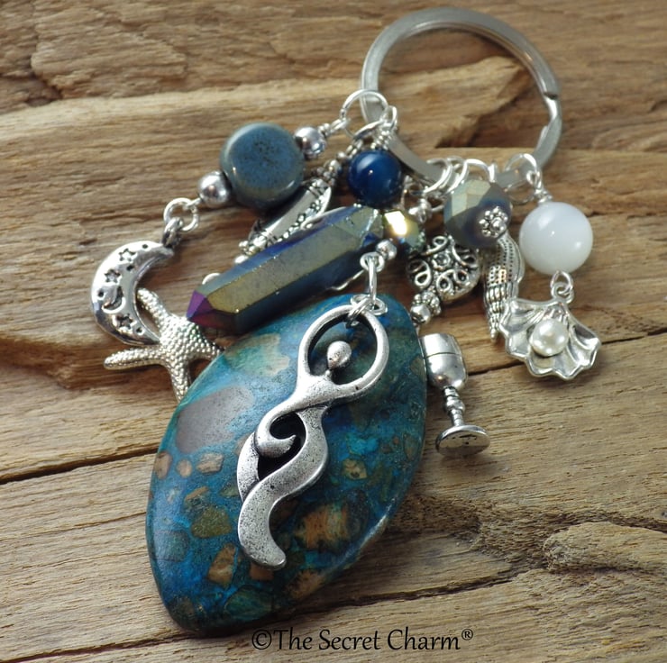 I've created this bag charm with the sea Goddess Coventina in mind.