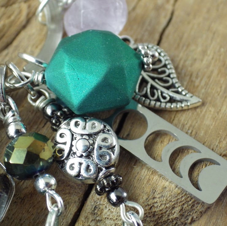 Loaded with charms, crystals and semi precious gemstones.