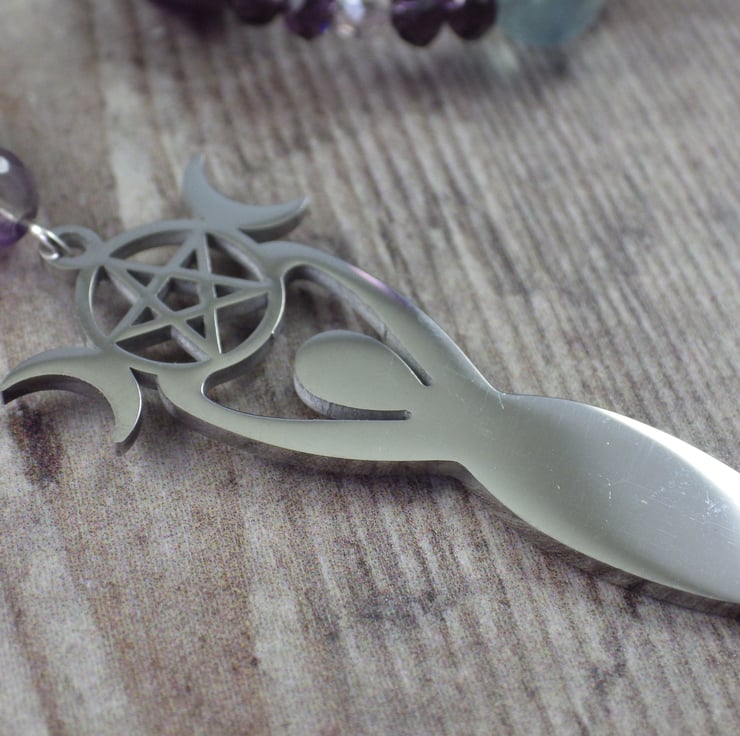 silver stainless steel triple Goddess amulet 42mmx20mm