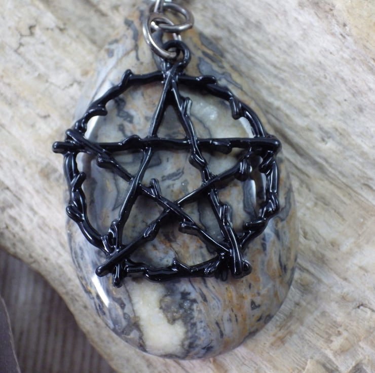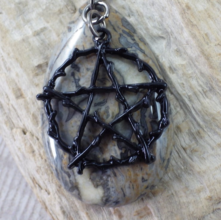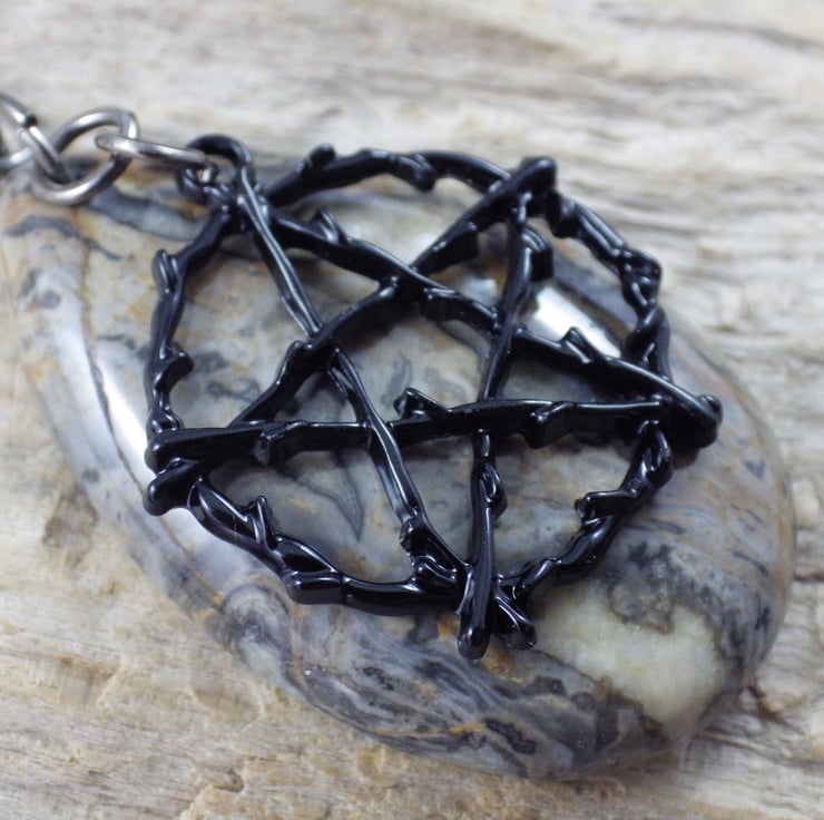 black enamelled metal pentagram (26mmx26mm)