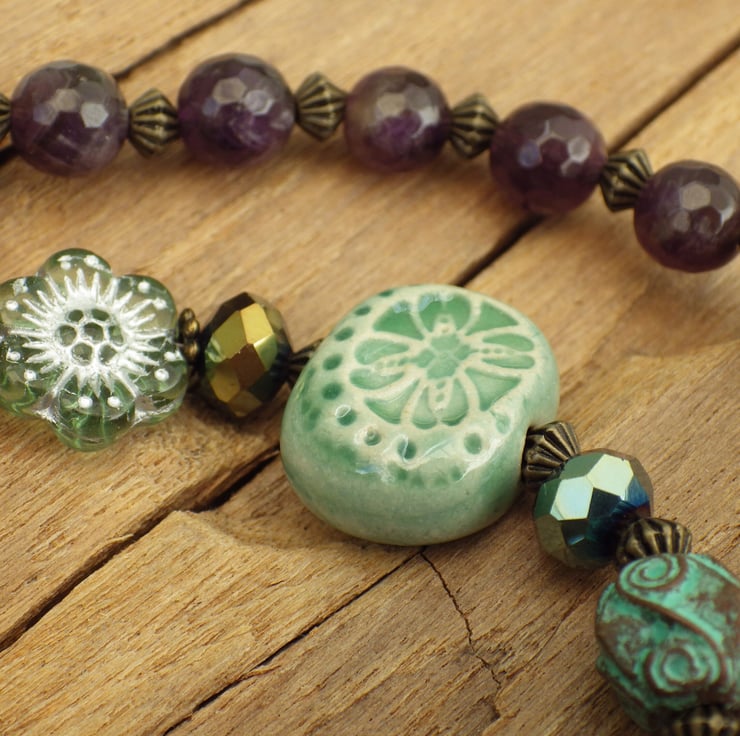 Handmade with high quality gemstones, ornate copper beads, crystals, artisan ceramics & artisan lampwork glass.