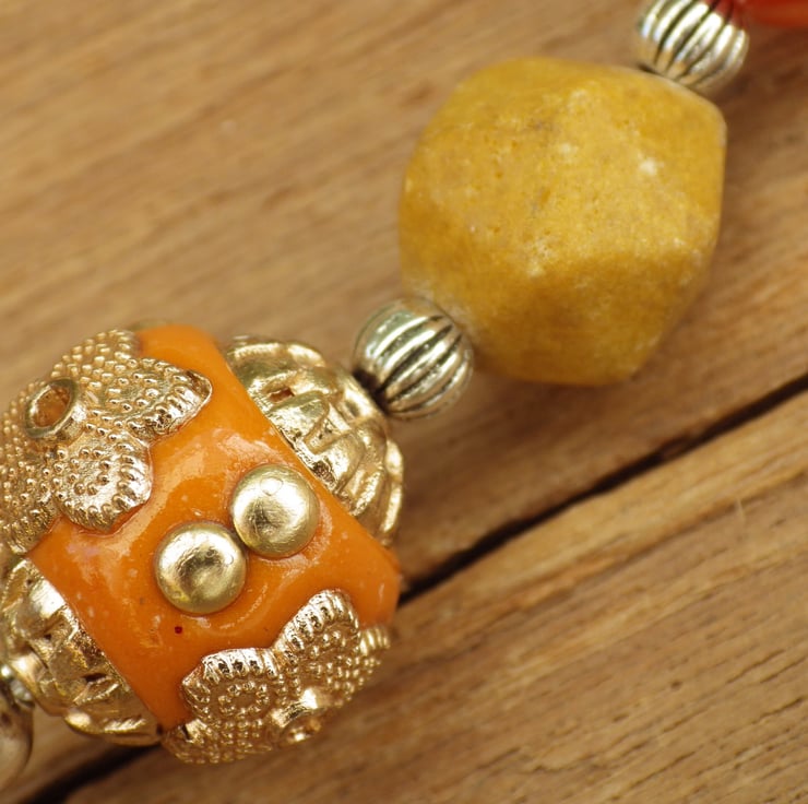 High quality gemstones include a citrine chunk, carnelian and yellow jade.