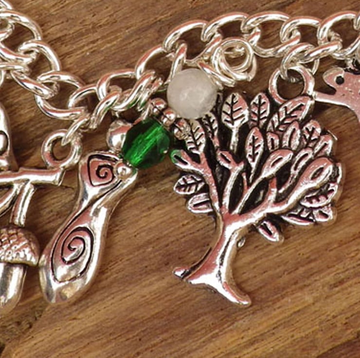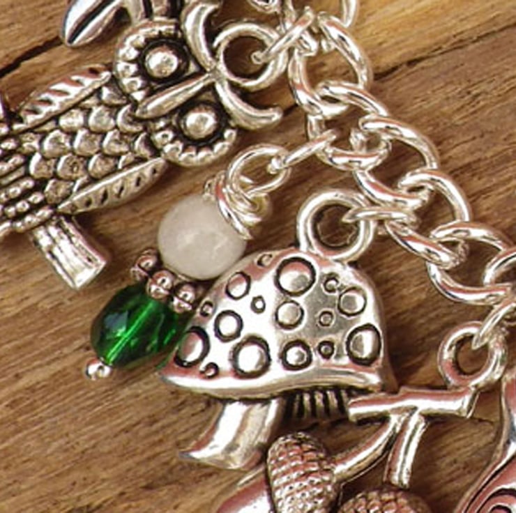 This pretty charm bracelet has been handmade for those who feel an affinity for nature, our forests, and the animals that reside within them.
