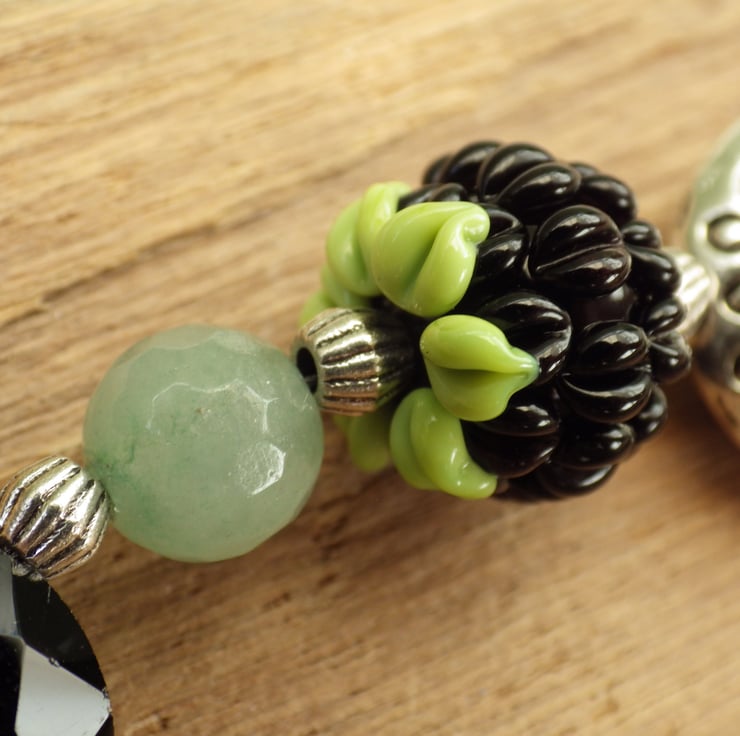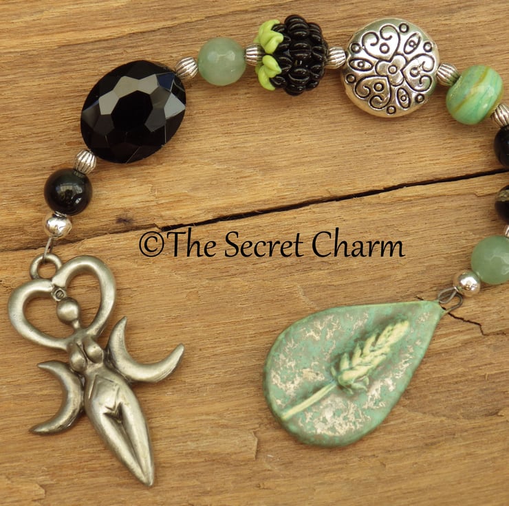 The strong feminine energies of this piece are amplified by the inclusion of handmade beads & pendants of lampwork glass, polymer clay & pewter by female artisans in the US and UK. There are some truly beautiful pieces of work included in this strand.