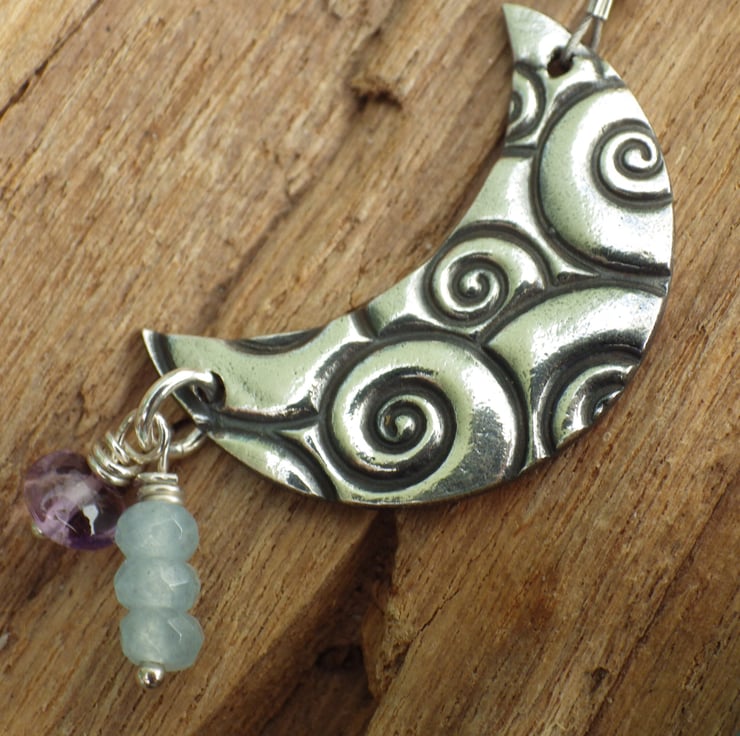 Gemstones include: amethyst, natural turquoise and aquamarine,