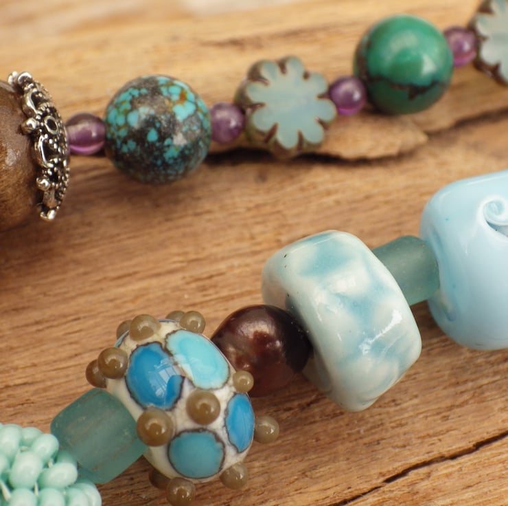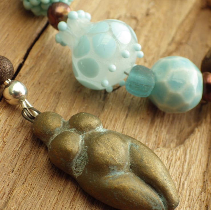 The strong feminine energies of this piece are amplified by the inclusion of handmade lampwork glass and ceramics by female artisans from the UK, Australia, the Netherlands, Germany and the US. There are some truly beautiful pieces of work included in this strand.