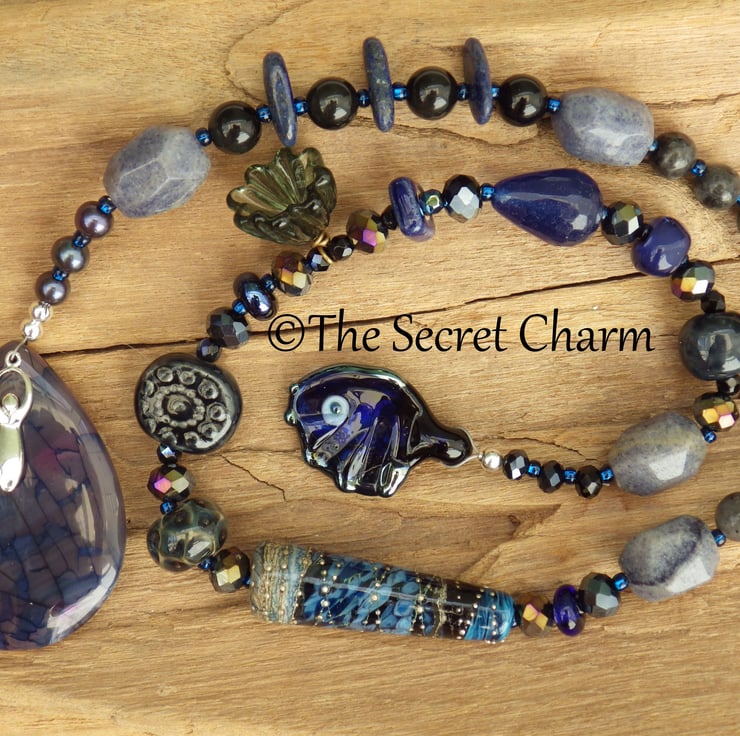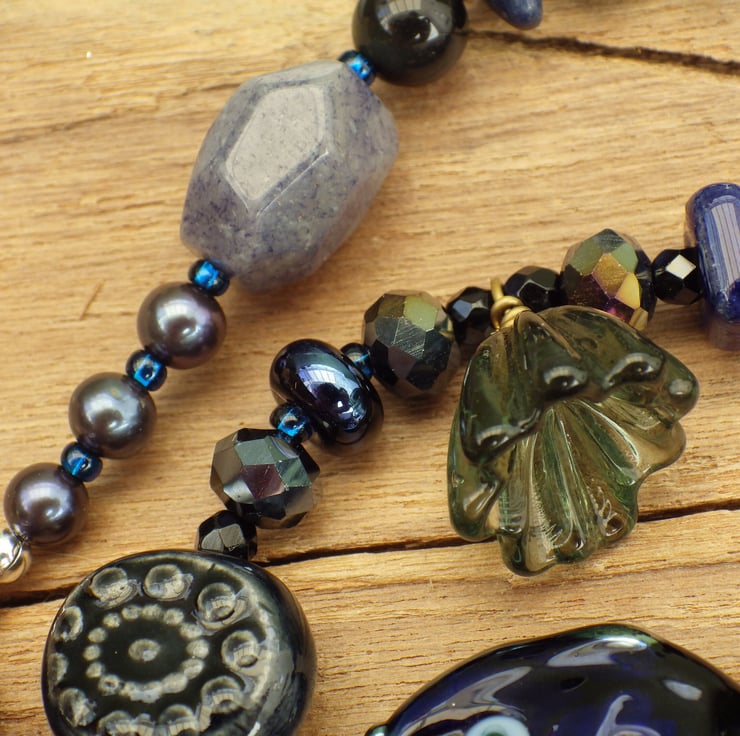 Handmade using gemstones, sterling silver, artisan lampwork glass, artisan ceramics, freshwater pearls and crystals.