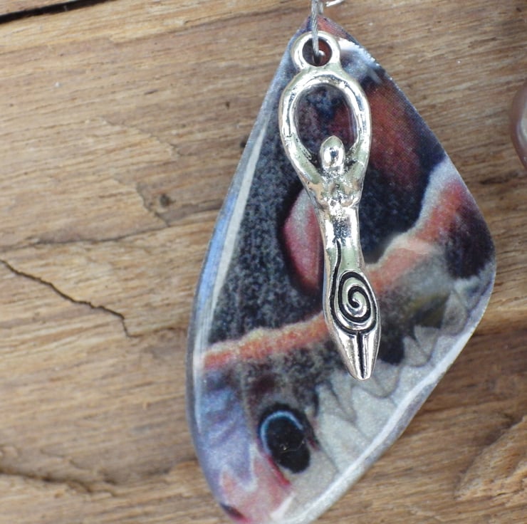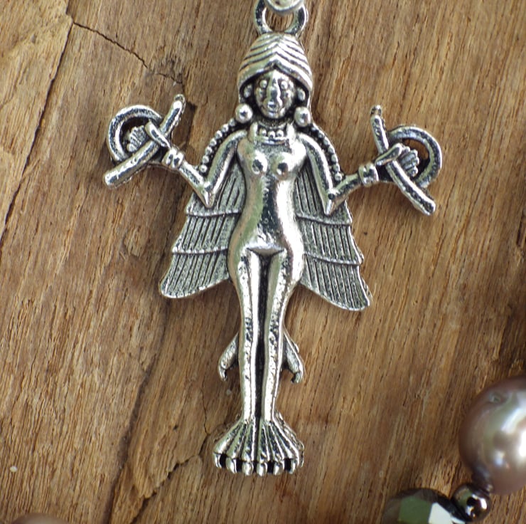 A pewter Goddess Lilith charm (38mm) hangs from one end of the meditation beads, with a beautiful artisan resin butterfly wing hanging from the other.